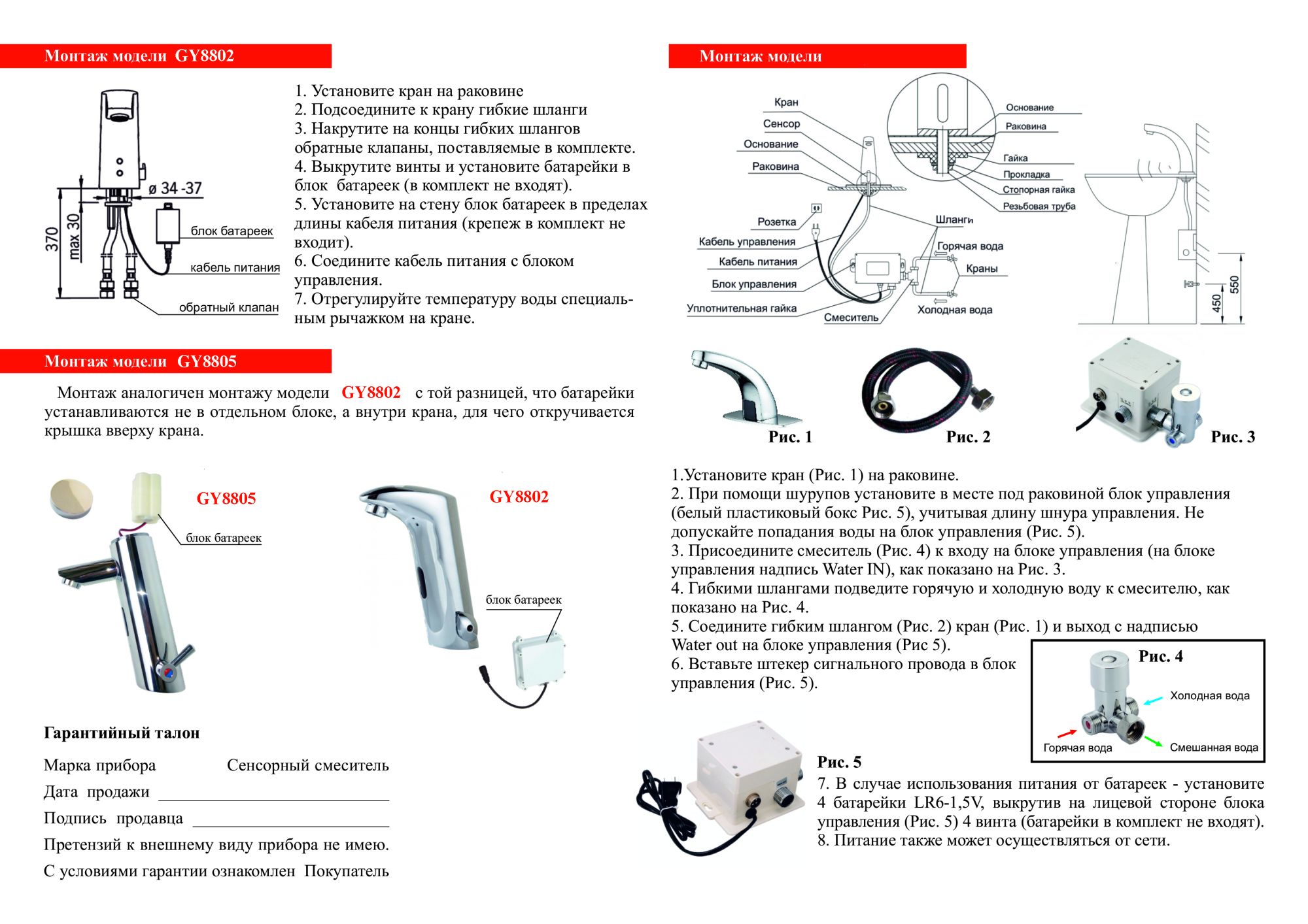 Инструкция для товара Сенсорный смеситель Savol S-GY8895 для раковины хром